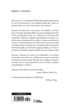 Mensaje a mensaje, sus vidas se van dibujando y ese mismo contestador que recibe sus confidencias trenzará sus historias revelando el enorme poder liberador de la palabra. Mensaje a mensaje, el lector avanza queriendo conocer el final y también descubriéndose a sí mismo con igual voracidad.